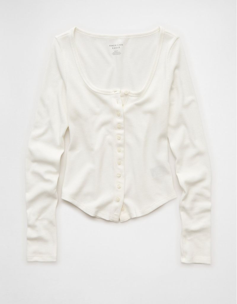 Ropa MujerCamisetasRegular FitCamiseta Manga Larga con Botones Ae