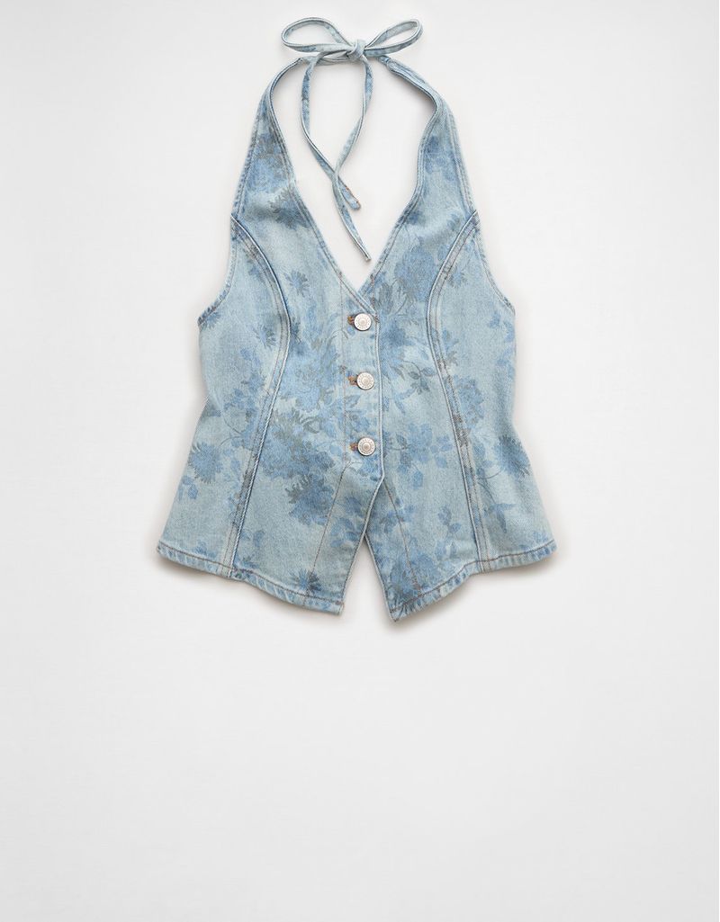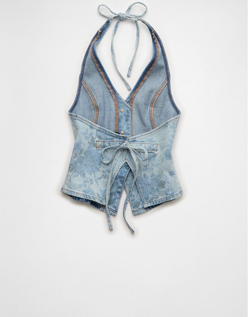 Chaleco en Denim Estampado Floral y Lazo en la Espalda Ae | Tienda Online
