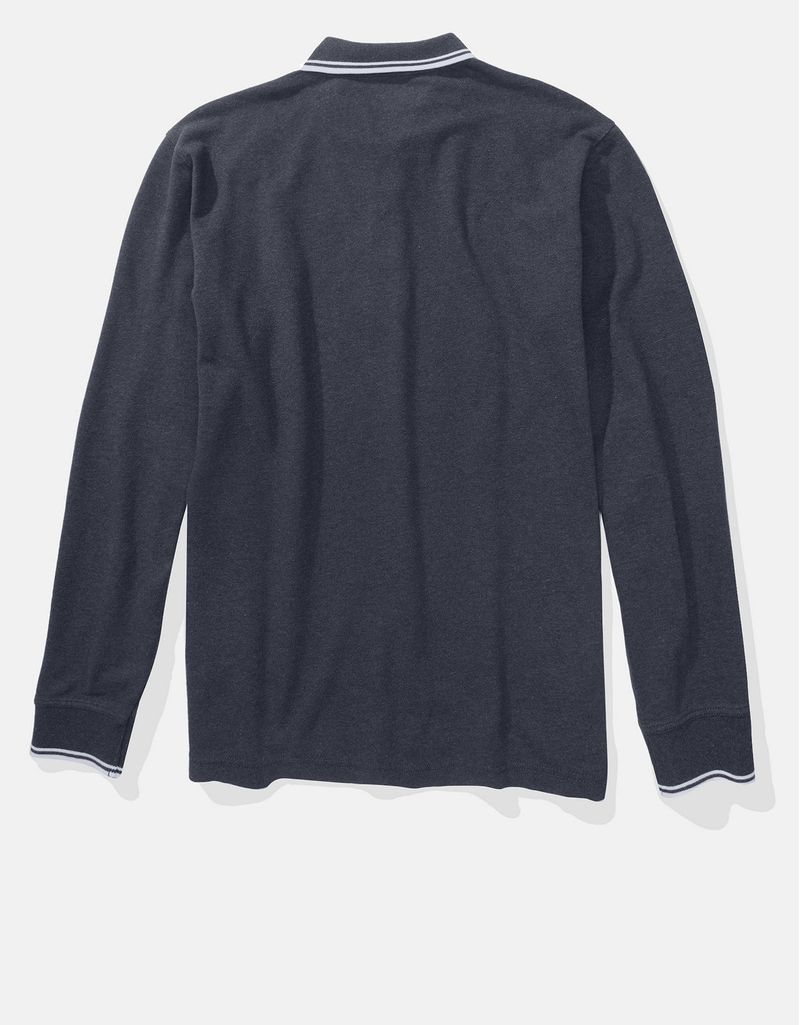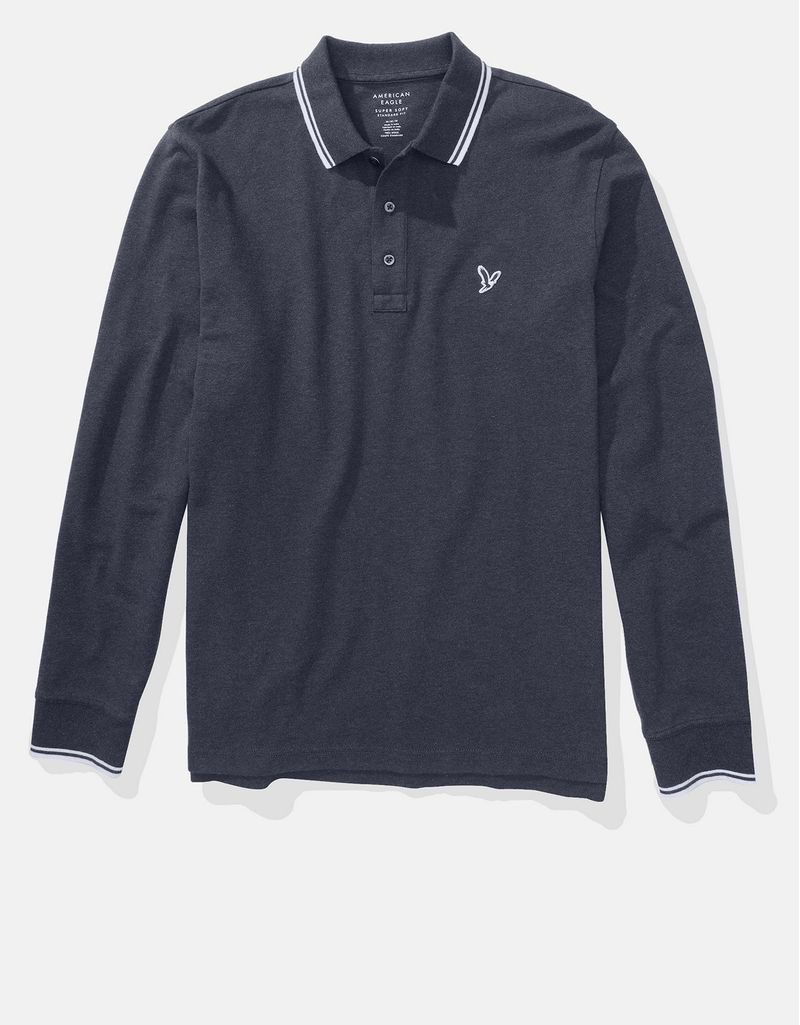Polo de piqué elástico de manga larga con ribetes | Tienda Online
